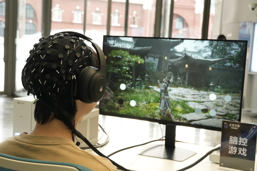 而岩思类脑则将神经科学和大模型深度融合。岩思类脑首席科学家李孟博士现场演示了脑控《黑神话:悟空》的游戏场景:用户戴上脑电帽,仅用5分钟完成适配,即可流畅操控游戏角色完成复杂动作。