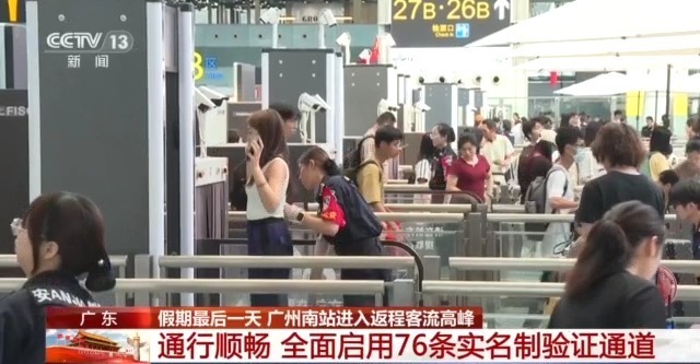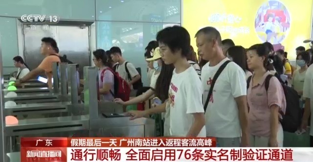 总台记者 秦芊茗:从10月6日开始,广州南站就进入了假期返程的客流高峰,今天许多旅客带着大包小包的行李来到候车大厅。为了让旅客安检更加通畅,在客流高峰期间,广州南站全面启用76条实名制验证通道与48条安检通道。虽然安检口的客流不少,但整体通行还是较为顺畅的金富宝,平均等候10分钟左右就能进入候车大厅。