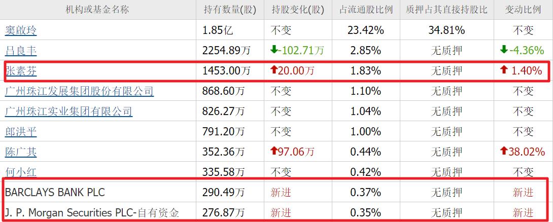 巴克莱新进290万股,位列第九大流通股东;J.P摩根新进276万股,位列第十大流通股东。